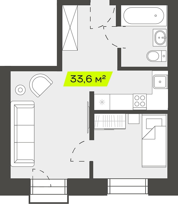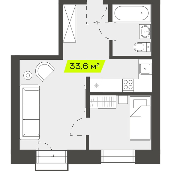 2К студия 33,59 м²