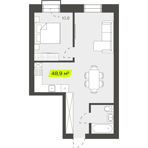 2К студия 48,91 м²