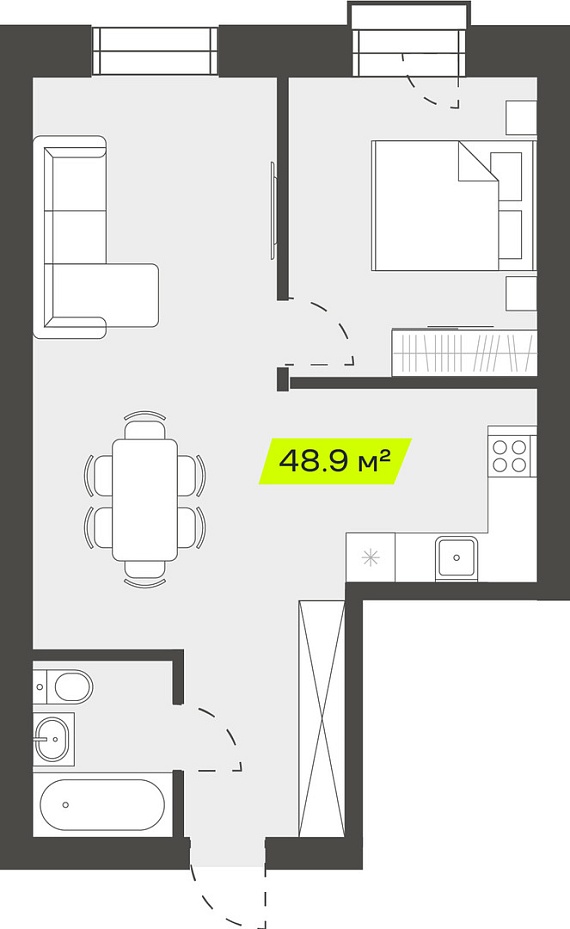 2К студия 48,91 м²