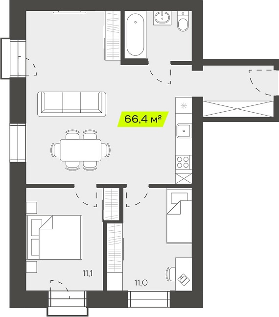 3К студия 66,45 м²
