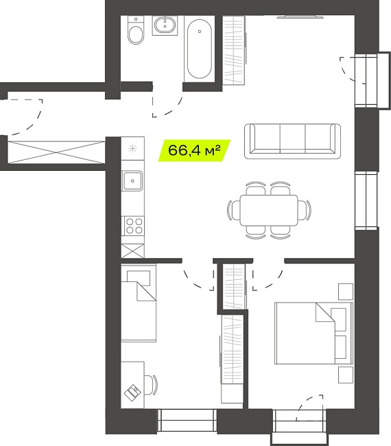 3К студия 66,45 м²