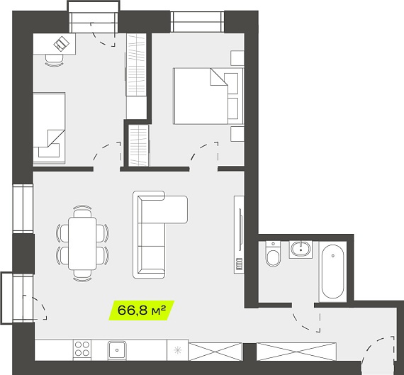 3К студия 66,85 м²