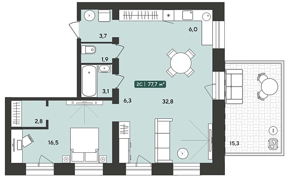 2К квартира 76,4 м²