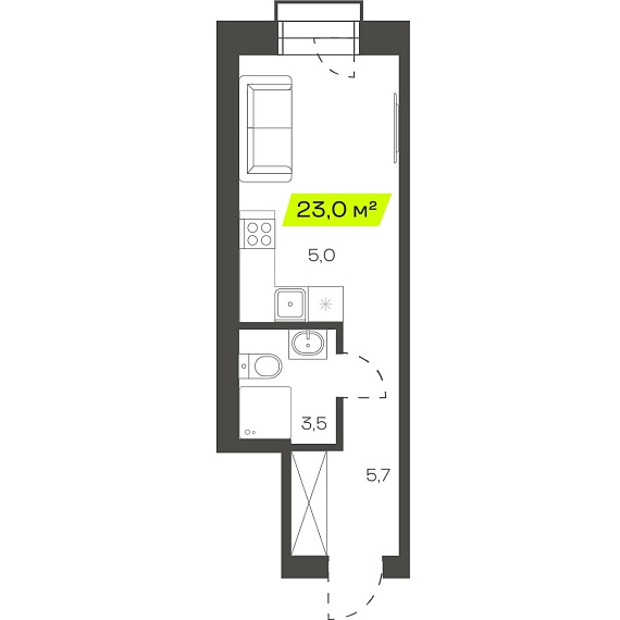 1К студия 22,97 м²
