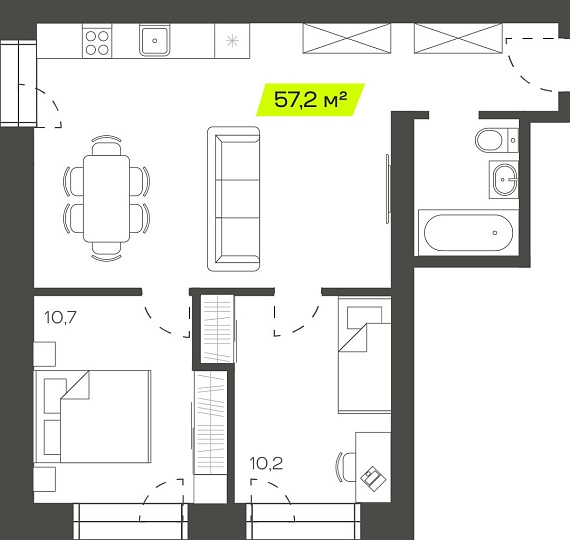 3К студия 57,19 м²