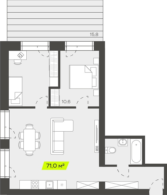 3К студия 70,97 м²