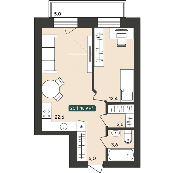 2К квартира 48,9 м²