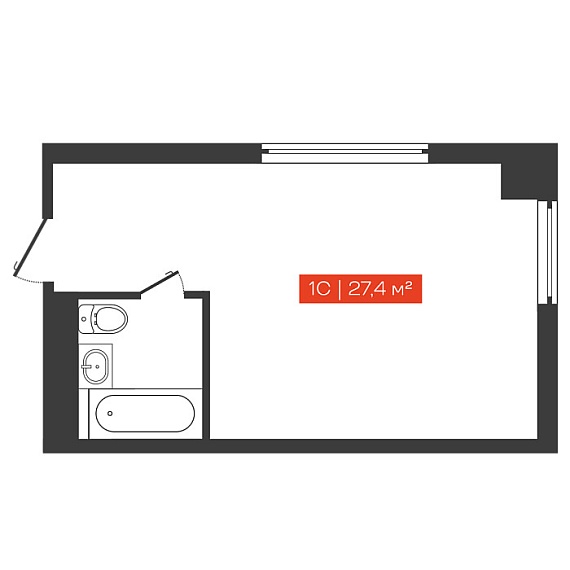 1К квартира 27,4 м²