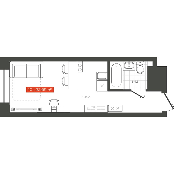 1К квартира 22,65 м²