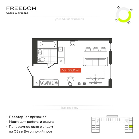 1К студия 29,2 м²