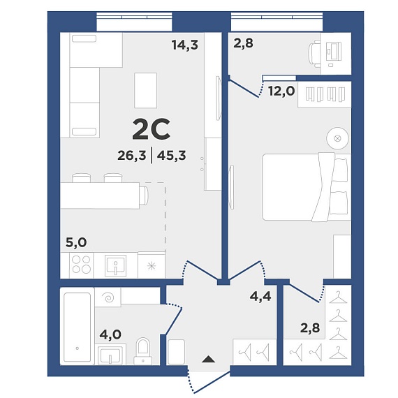 2К квартира 45,3 м²