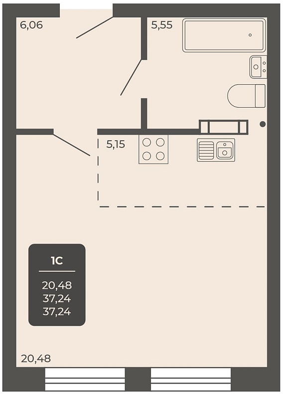 1К студия 36,8 м²