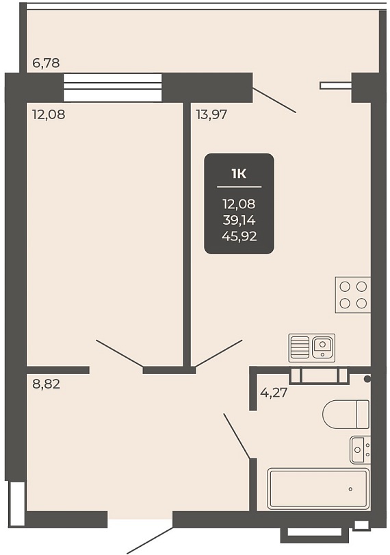 1К квартира 45,3 м²