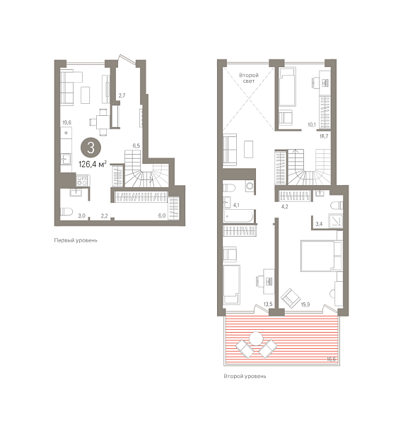 3К квартира 126,5 м²