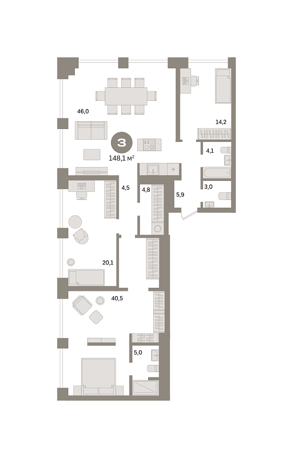 3К квартира 148,1 м²