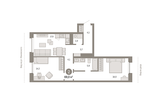 2К квартира 69,2 м²