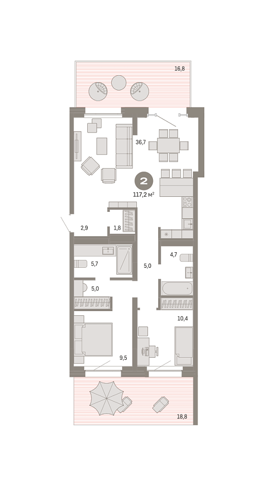 2К квартира 117 м²