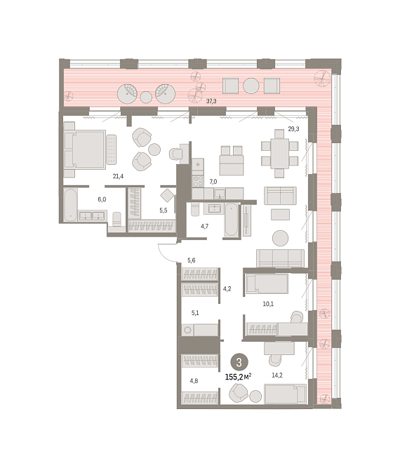3К квартира 155,15 м²