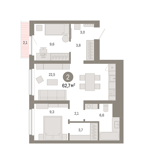 2К квартира 62,7 м²