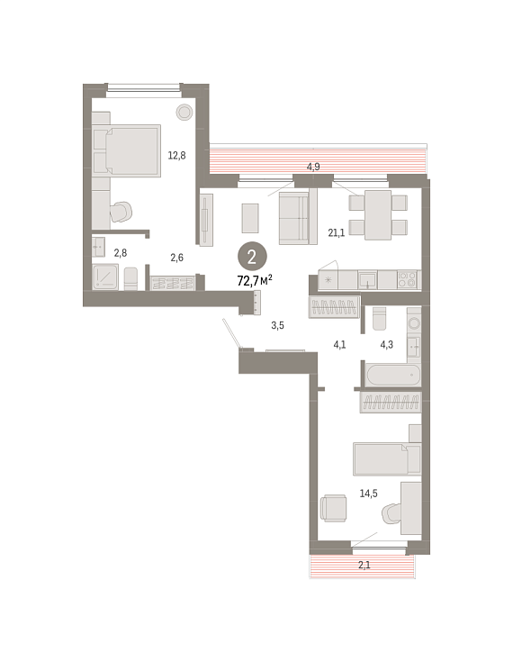 2К квартира 72,7 м²