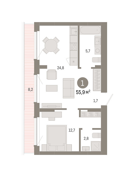 1К квартира 55,9 м²
