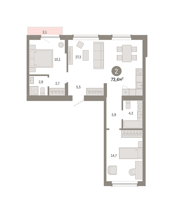 2К квартира 73,4 м²