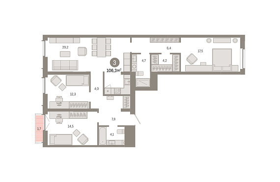 3К квартира 106,31 м²