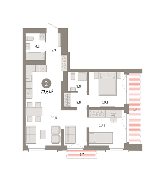 2К квартира 73,58 м²
