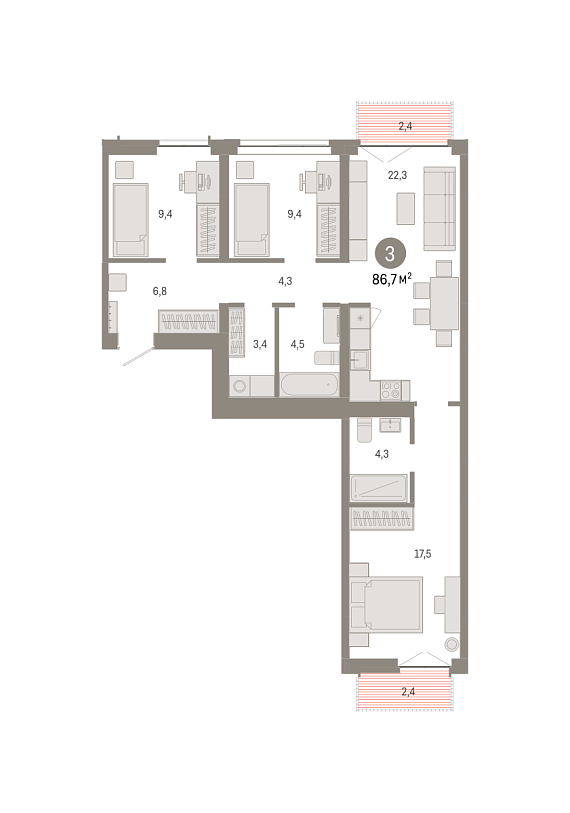 3К квартира 86,69 м²