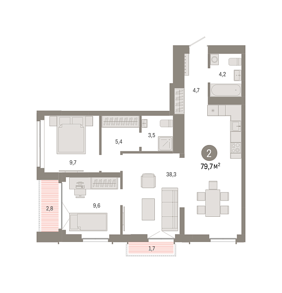 2К квартира 79,69 м²