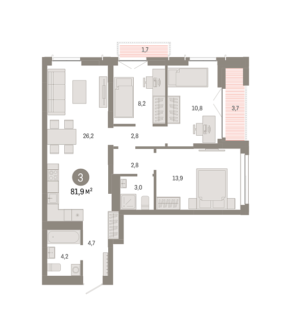 3К квартира 81,92 м²