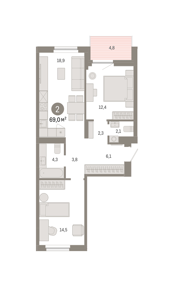 2К квартира 69,04 м²