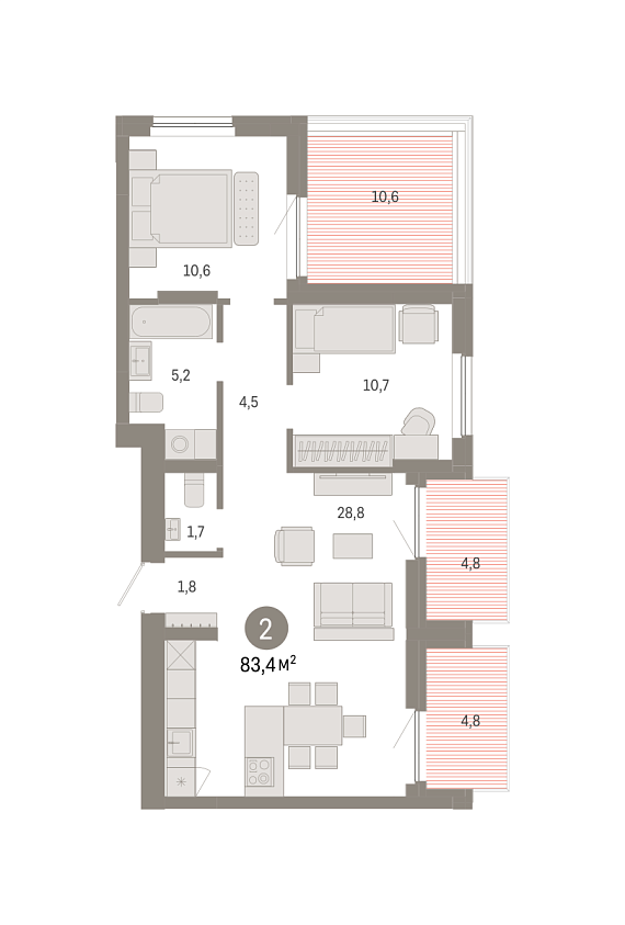 2К квартира 83,38 м²