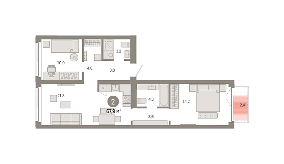 2К квартира 67,86 м²
