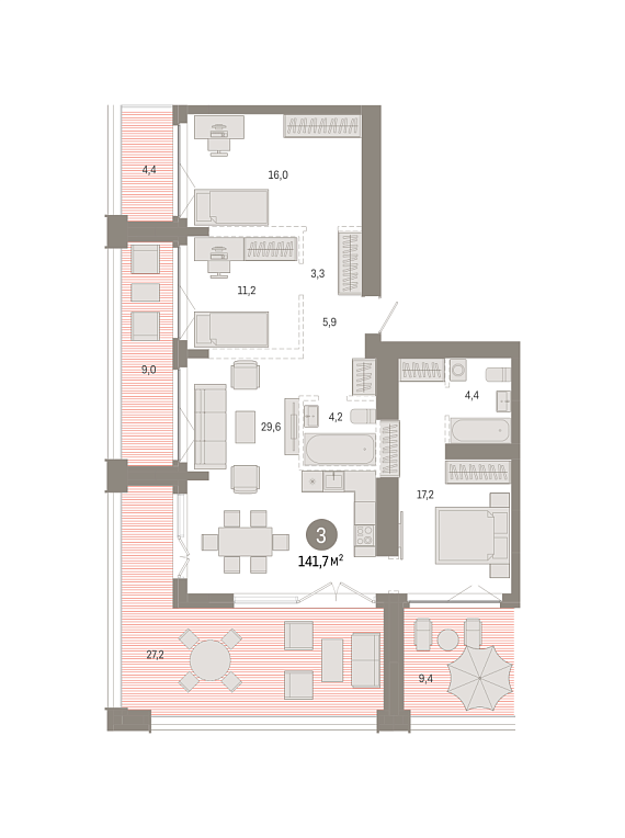 3К квартира 141,74 м²