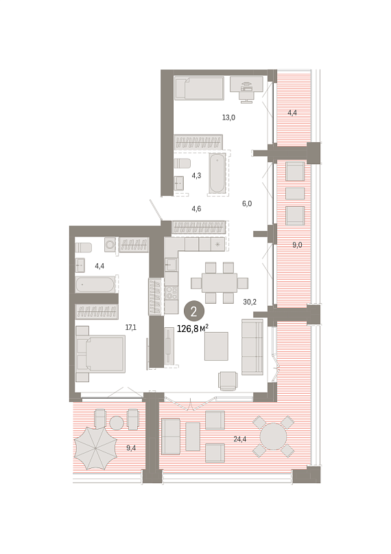 2К квартира 126,81 м²