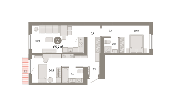 2К квартира 65,65 м²
