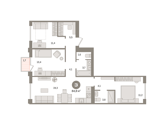 3К квартира 84,77 м²
