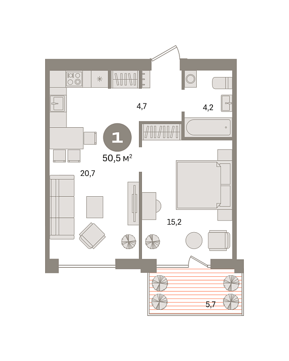 1К квартира 50,45 м²