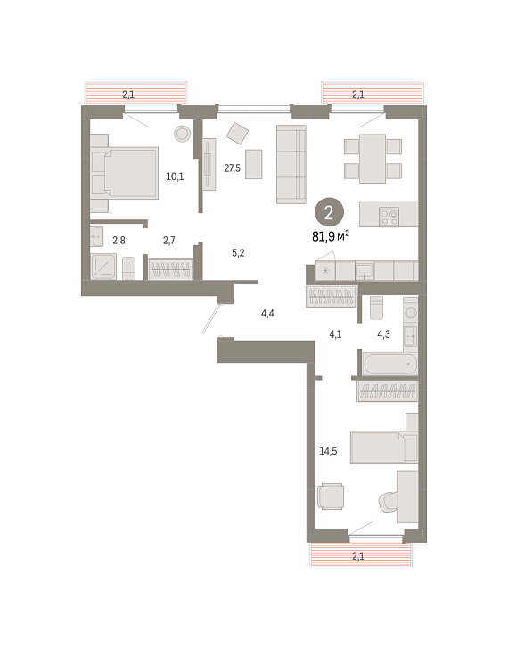 2К квартира 81,9 м²