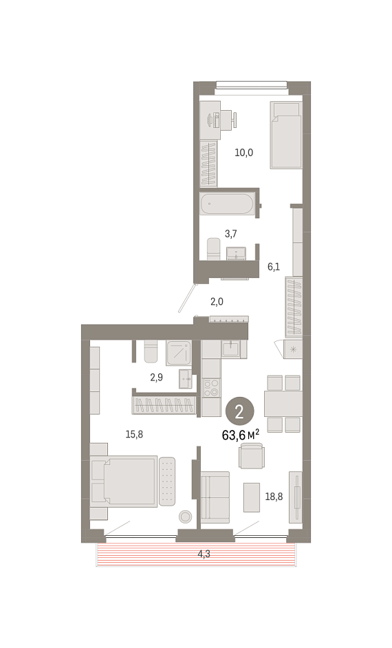 2К квартира 63,6 м²