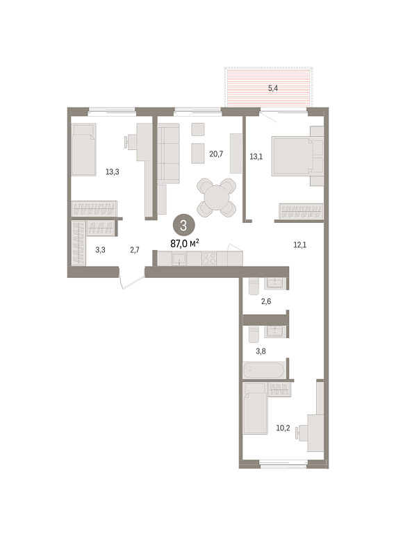 3К квартира 87,04 м²