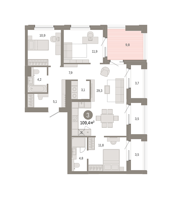 3К квартира 109,35 м²