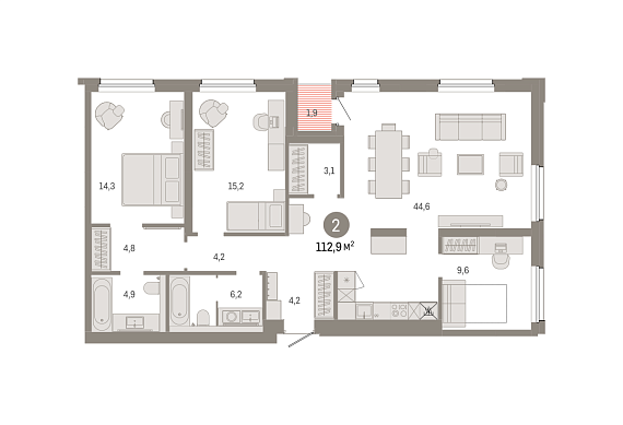 2К квартира 112,92 м²