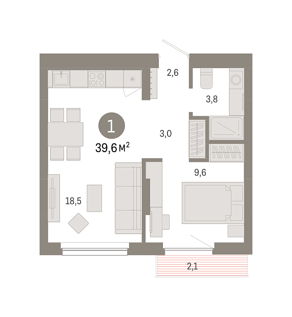 1К квартира 39,6 м²