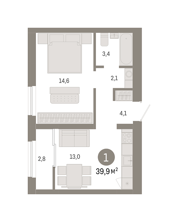 1К квартира 39,9 м²