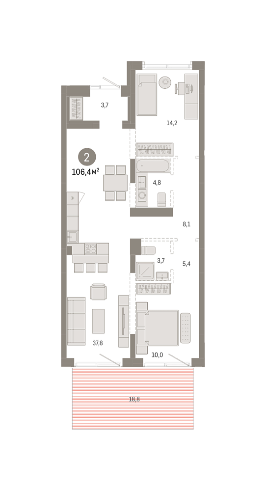2К квартира 106,44 м²