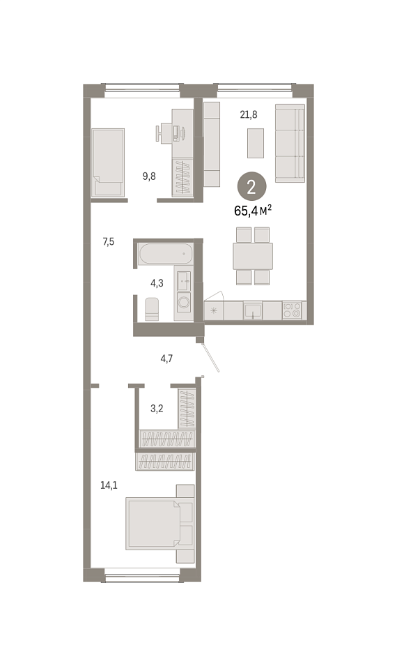 2К квартира 65,41 м²