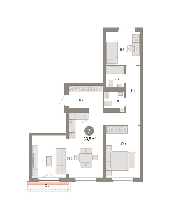 2К квартира 83,52 м²