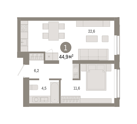 1К квартира 44,85 м²